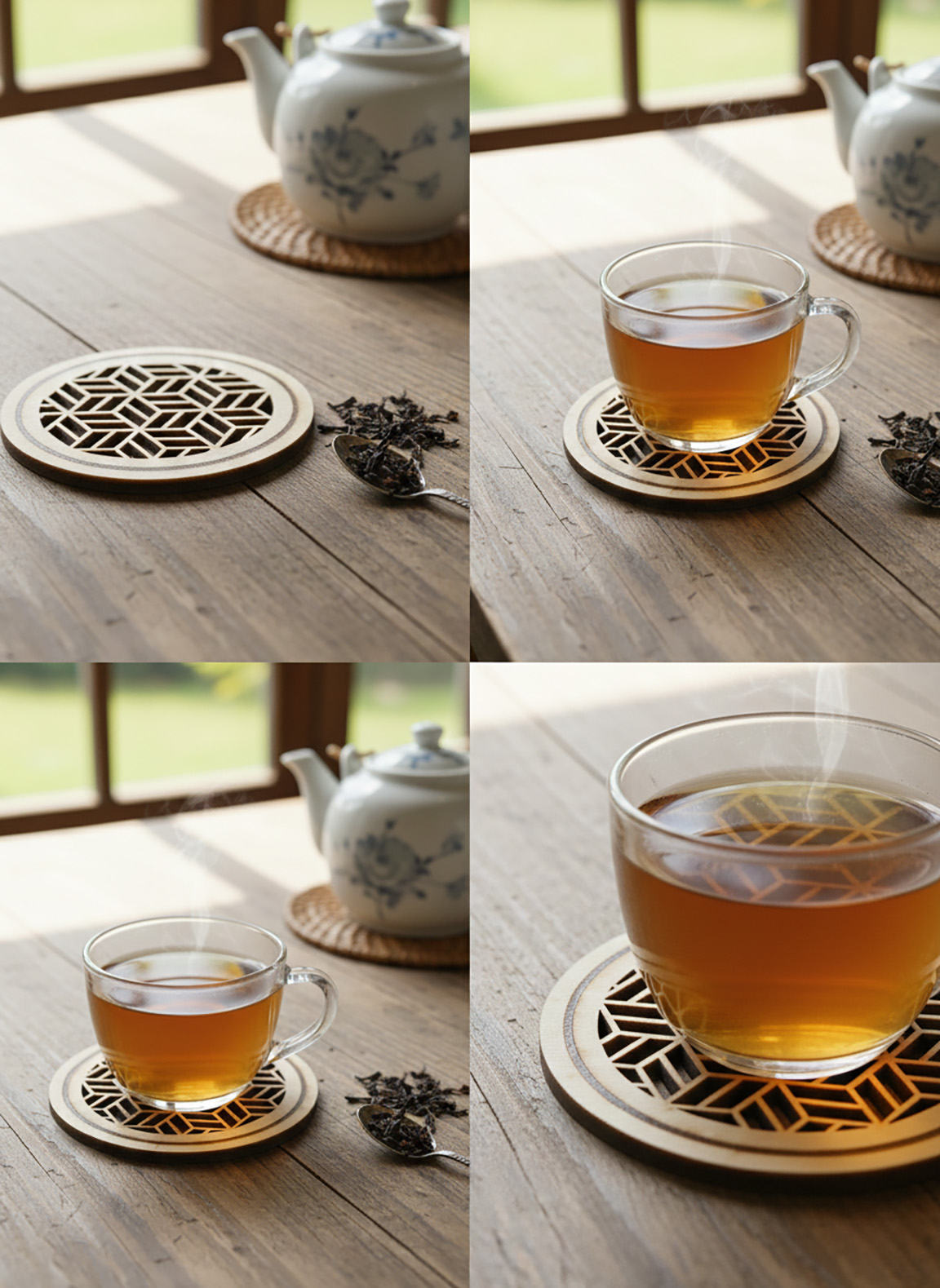 Doğal ahşap yapısı sayesinde sıcak bardakların masanızda iz bırakmasını engeller.