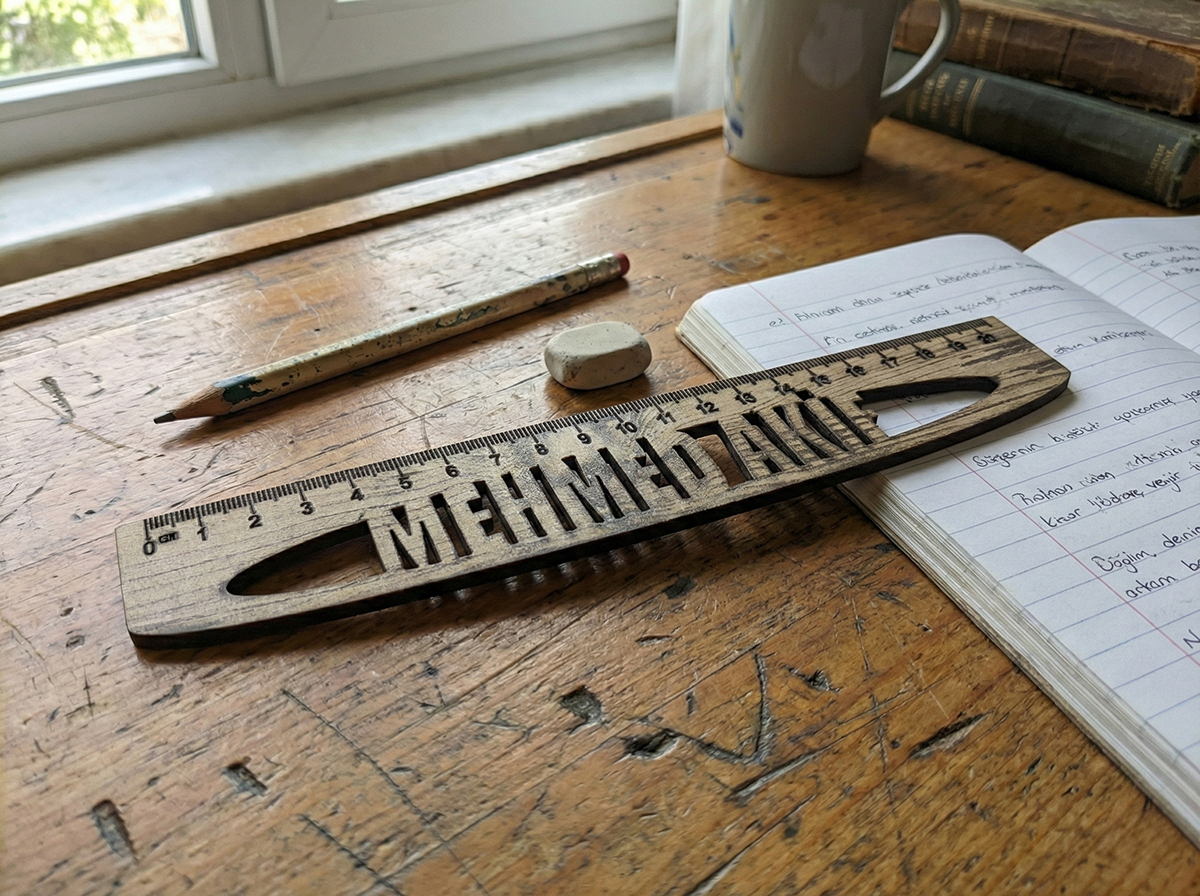 Kişiye Özel Tasarım: Siparişiniz üzerine belirteceğiniz isim, cetvelin içine özel olarak işlenir.