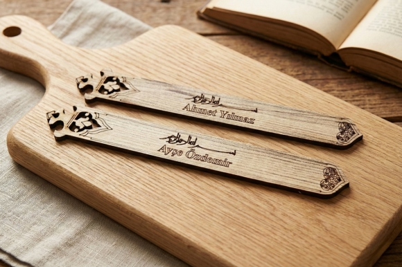 Ahşap Kitap Ayracı - İsim Baskılı, Lazer Kesim Özel Tasarım