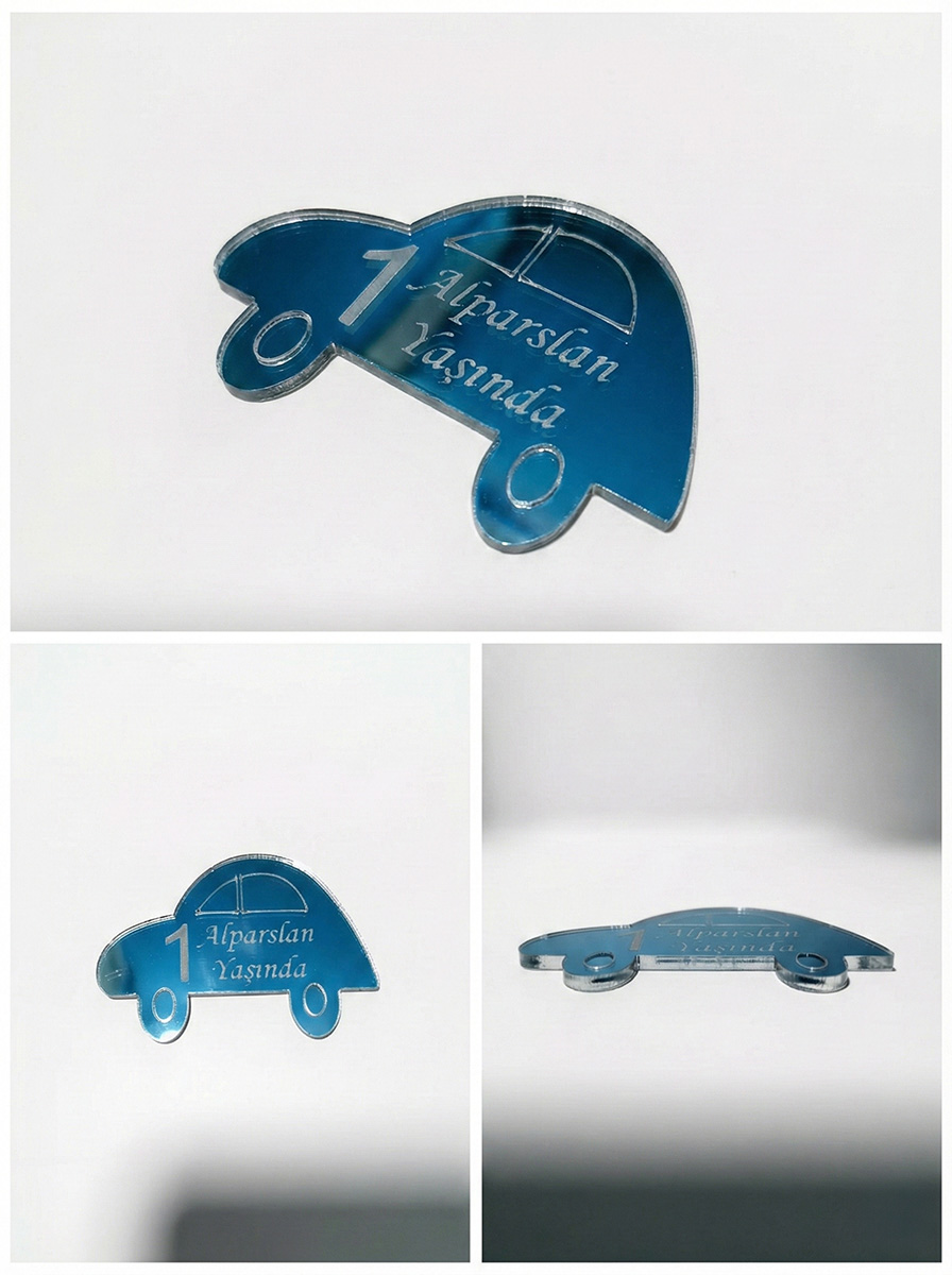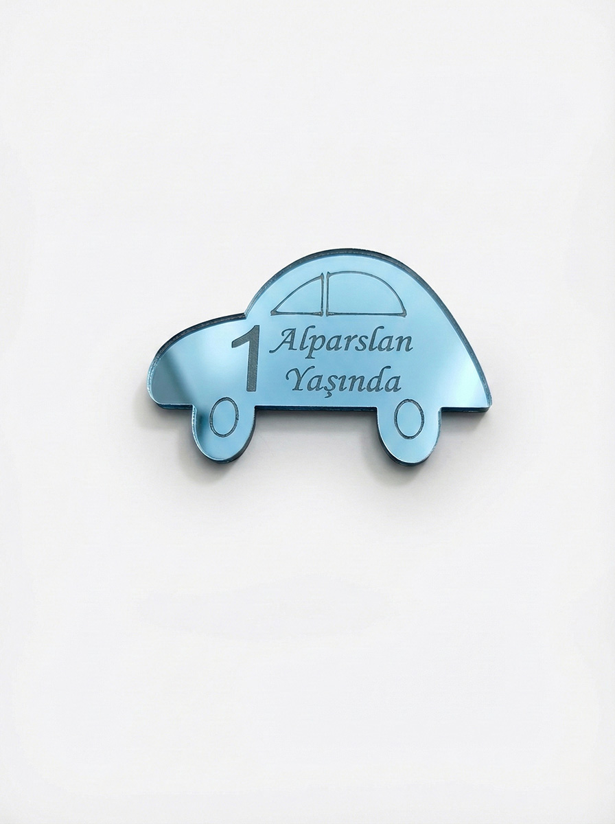 Tahtagurusu Kişiye Özel Tasarım Araba Figürlü Gümüş Ayna Pleksi Magnet (1 Yaş Hatırası)