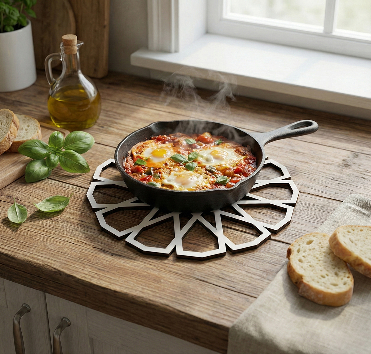 Mutfağınıza şıklık katacak, modern geometrik desenli bu nihale, hem sunumlarınızda hem de sıcak tencere/çaydanlık altlığı olarak güvenle kullanılabilir. 5mm kalınlığı sayesinde standart 3mm ürünlere göre çok daha dayanıklı ve toktur.